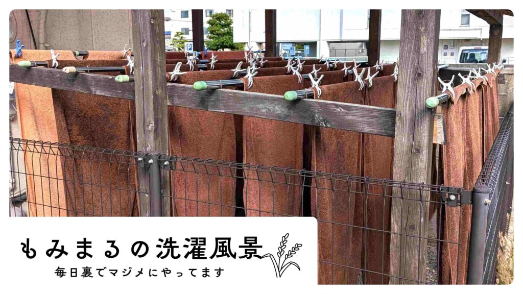 もみまるでは毎回タオルを取り換える為、膨大な量の洗濯物がでるので、裏に特設の選択干し場があるのです!